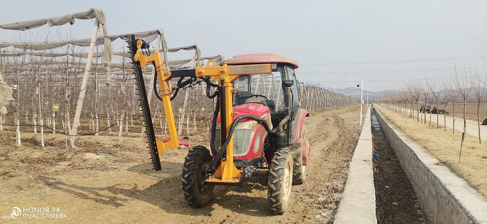FE1D01-02 pruning machine is a mechanized pruning equipment developed by Zoomye Company according to the unified preliminary pruning of branches between rows in winter, summer and autumn in modern wide row and dense planting orchards. The whole machine is fully hydraulically driven and controlled, with simple operation and high trimming efficiency! The trimmer is installed at the front of the tractor. The operator can flexibly adjust the trim height, trim angle and side extension width of the trimmer through the electric control or manual control of the hydraulic valve. It is easy and convenient to work!